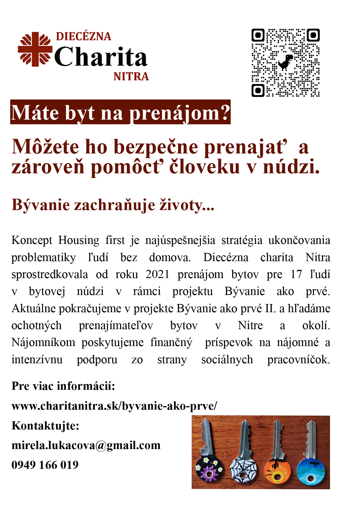 Pod chórusom nájdete obálku od Slovenskej kat. charity s pôstnou krabičkou pre Ugandu a Rwandu. A na nástenke je od Diecéznej charity NR projekt Bývanie ako prvé o prenajímaní bytov a domov.