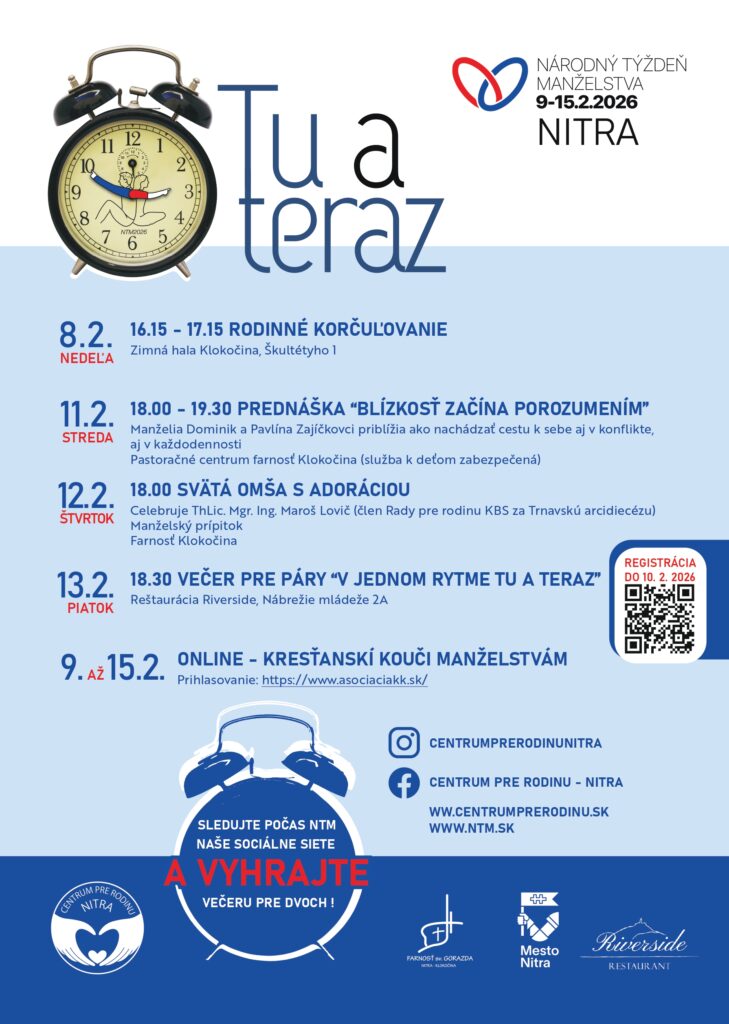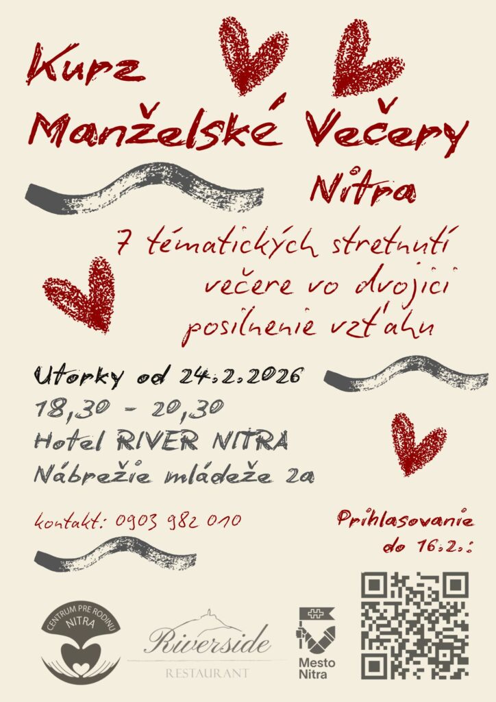 Do 16.2. je tiež možné sa prihlásiť na Kurz manželské večery, skladajúci sa zo 7 tématických stretnutí na posilnenie manželstva.