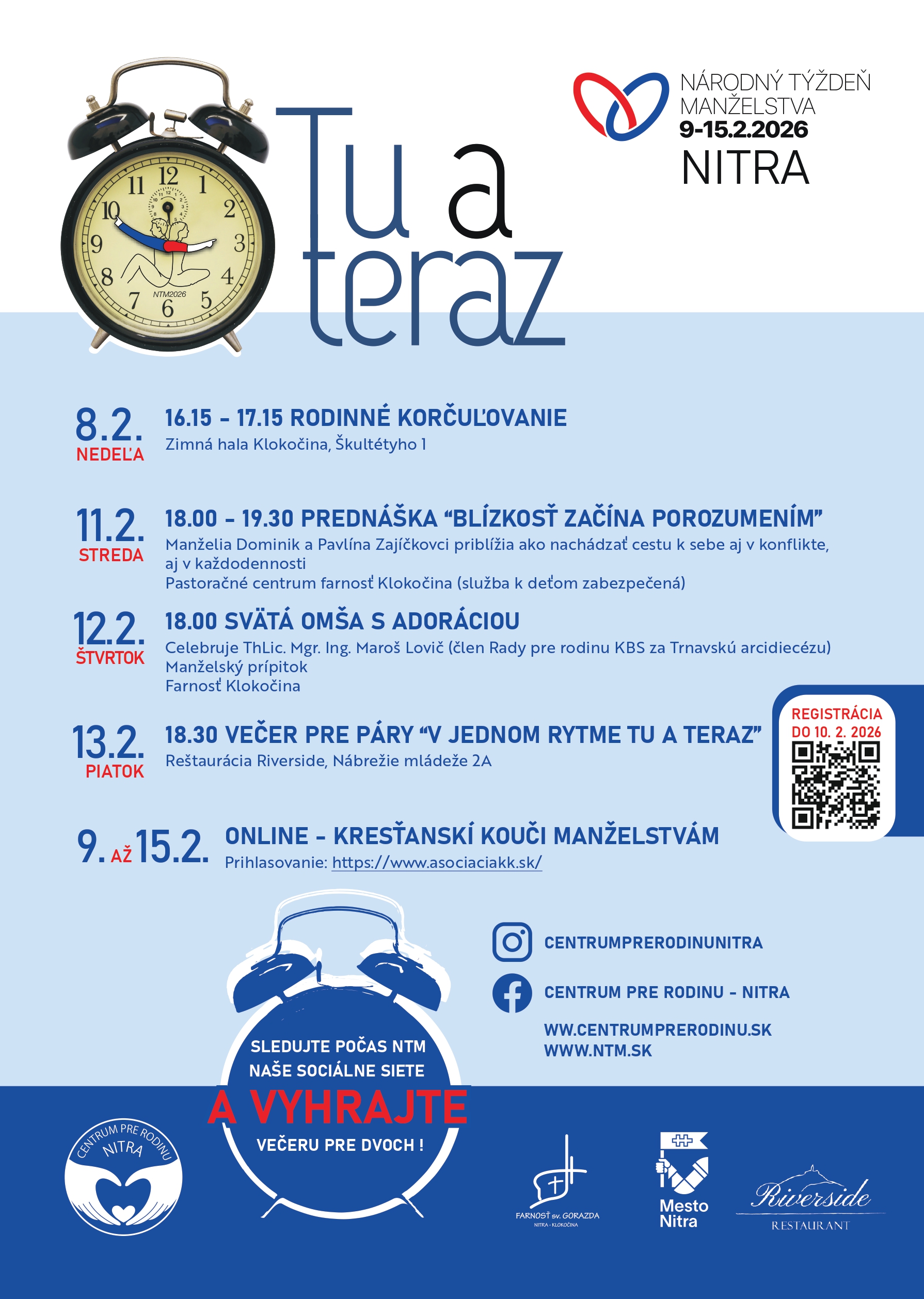 - streda 11.2. Prednáška o budovaní blízkosti, pastoračné centrum Klokočina