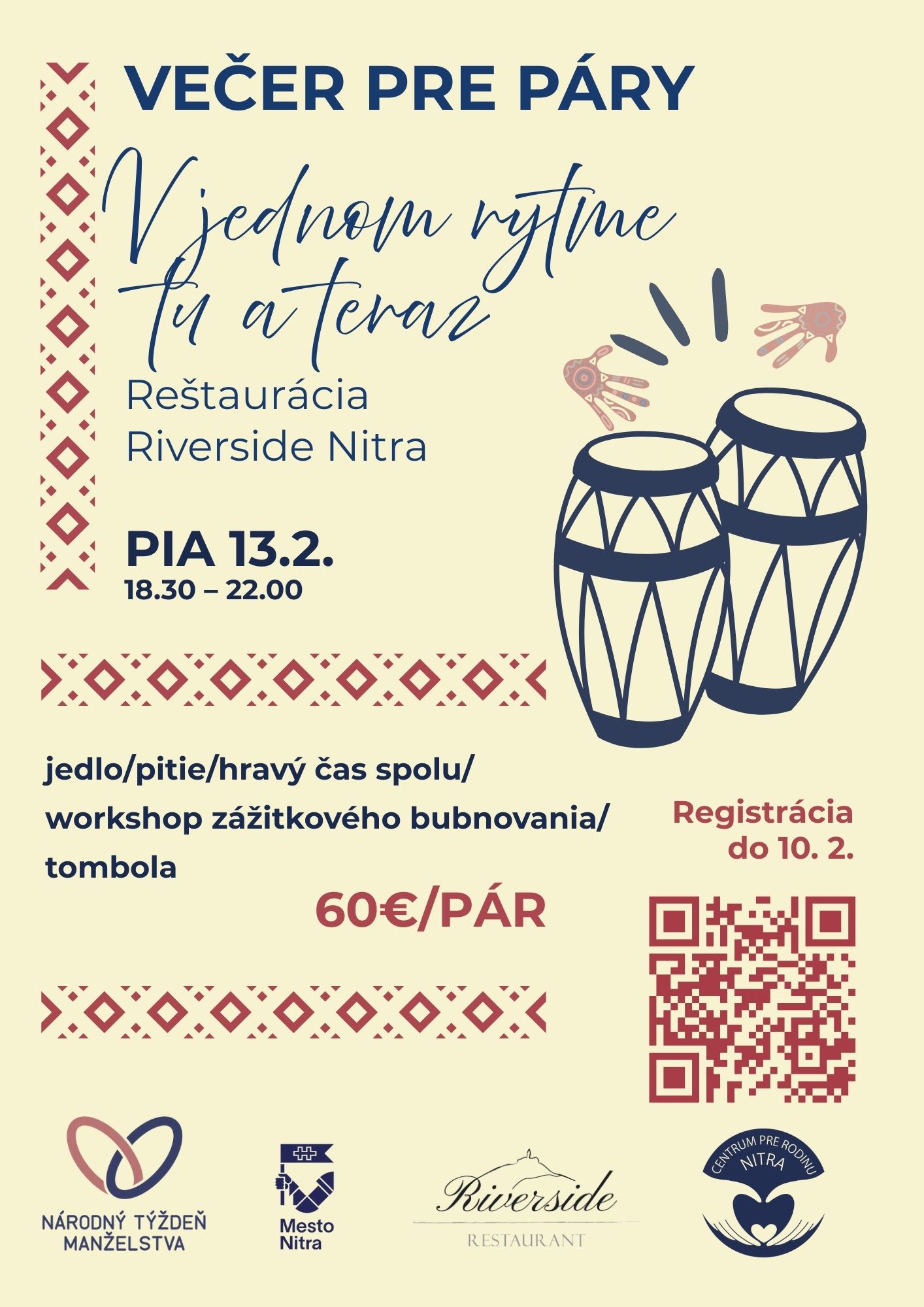 - piatok 13.2. Večer pre páry s hodnotným programom, reštaurácia Riverside